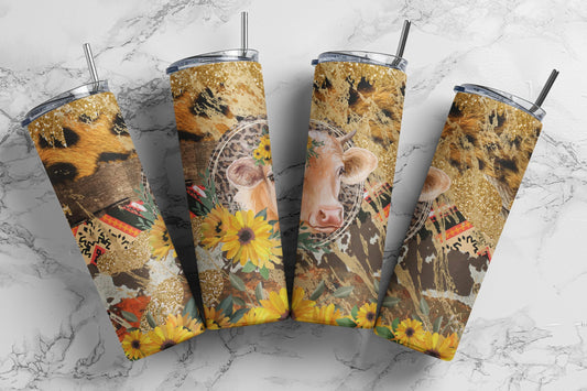 Tumbler | Floral cow1 | Farm Cows | animal print | Gift | flowers| OSFA |Great Gift- Ladies-Cows| Men|heifers
